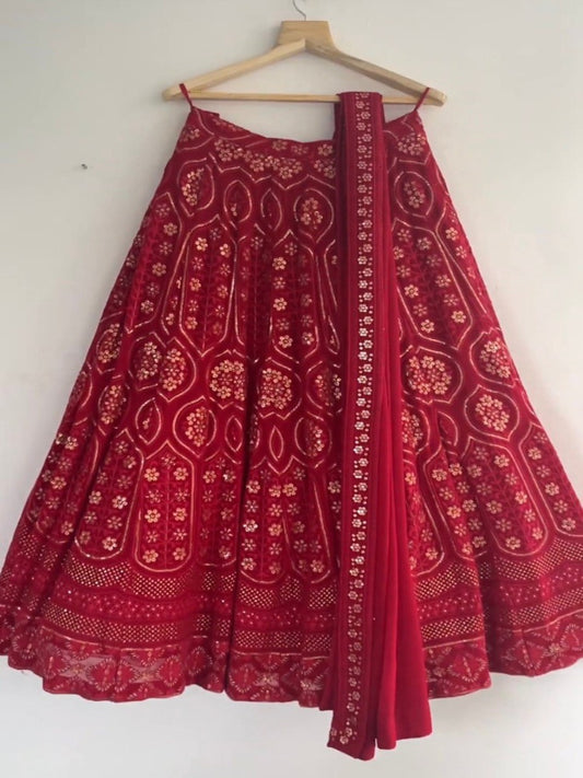 BEUTIQUE STYLES BRODAL GEORGETTE SEQUANCE WORK LEHENGA CHOLI WITH DUPATTA.