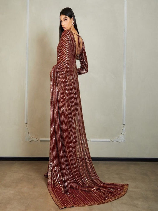 BEUTIQUE WEAR COLLECTION DOUBLE SEQUANCE WORK SAREE ON GEORGETTE WITH HEAVY WORK BLOUSE.